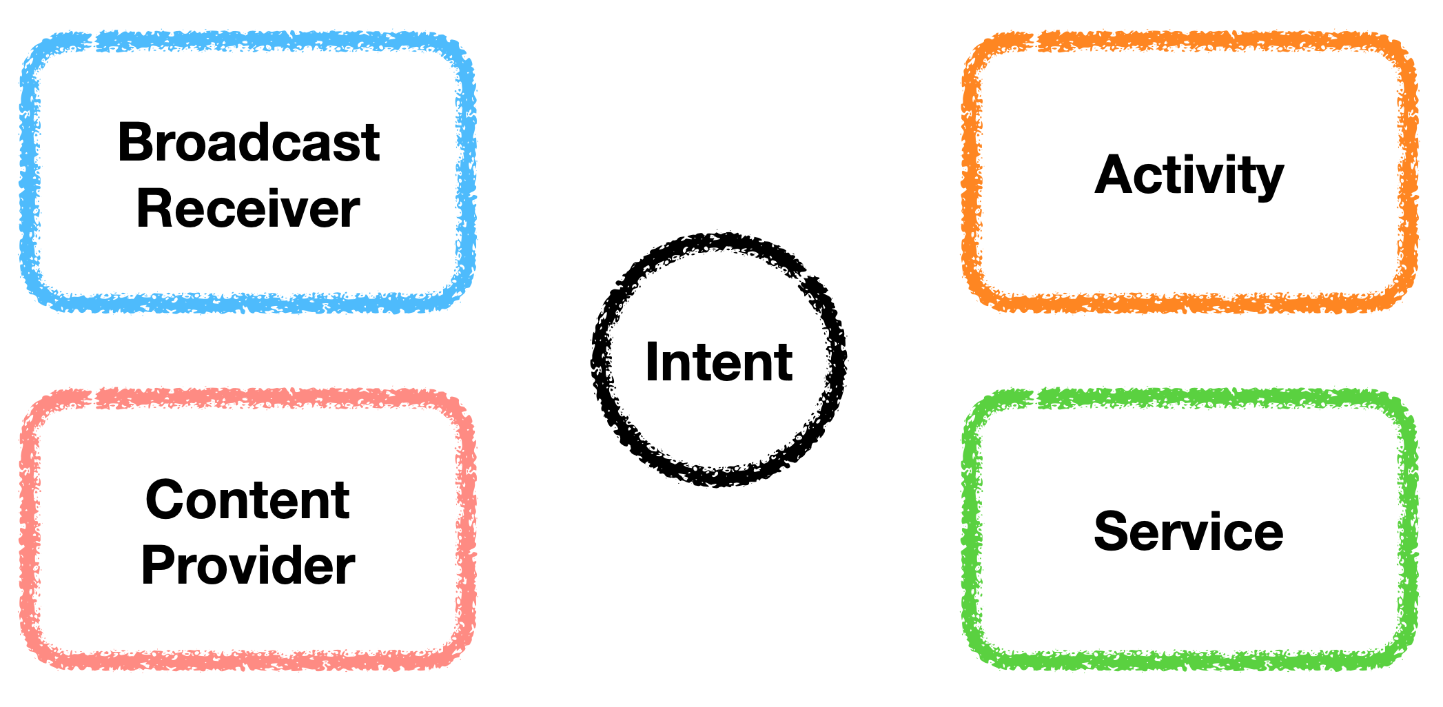 - Activity, Service, Broadcast Receiver는 Intent라는 비동기식 메시지로 시작될 수 있음.